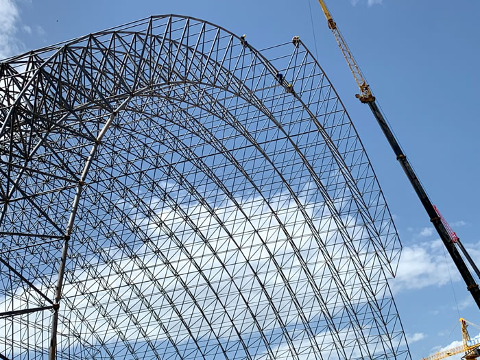 (2)网架加工前应对现场尺寸进行复测,确认无误后方可进行加工、安装;网架制作、运输、安装应遵守《空间网格结构技术规程》JGJ7-2010、《钢网架邵阳螺栓球节点》JG/T 10-2009、《钢网架邵阳螺栓球节点用高强度螺栓》 GB/T 16939-2016、《钢结构邵阳工程邵阳施工规范》 GB50755-2012、《钢结构邵阳工程施工质量验收标准》 GB50205-2020。